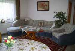 Das Wohnzimmer ist mit einer Eckcouch, einem Clubtisch, einem Sessel, einer Anrichte und einem TV-Gerät eingerichtet. In der offenen Küche finden Sie Elektroherdplatten, einen Backofen, eine Waschmaschine, eine Spüle, einen Kühlschrank und einen Tisch mit 4 Stühlen. Im Bad ist eine Dusche. Die beiden Schlafzimmer sind jeweils mit einem Doppelbett und einem Kleiderschrank möbliert. Zur Ferienwohnung gehört eine Süd-West-Terrasse mit Gartenmöbeln und Holzkohlegrill. Hier können Sie Ihre Urlaubstage ausklingen lassen. Ein PKW-Stellplatz ist vorhanden.